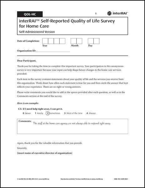 interRAI Self-Reported Quality of Life Survey for Home Care (QOL-HC) Self-Administered Version, (Standard English Edition), 9.3.0 - License to Print