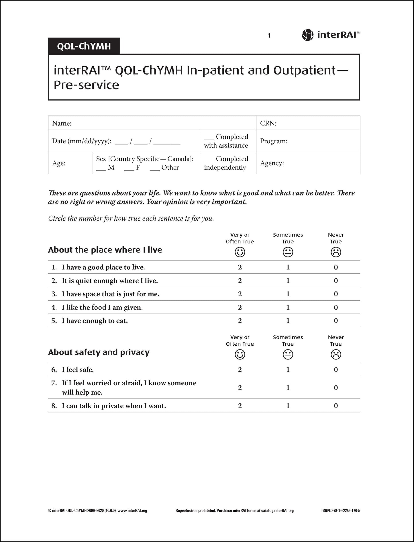 - interRAI QOL-ChYMH In-patient and Outpatient — Pre-service Score Sheet